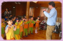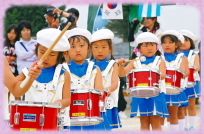 0歳からたくさんの楽器触れることで音楽に対する基礎と楽しさを知り、みんなで演奏することで協調性や達成感を養うため鼓隊や器楽楽奏に取り組んでいます。また、5歳児は集大成として運動会・音楽会で披露しています。
